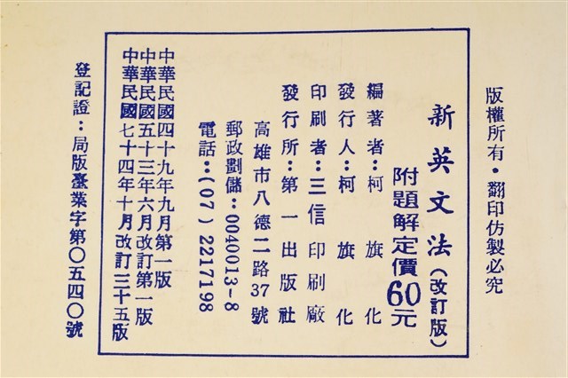 2019.024.0583 柯旗化編著《中學適用新英文法 (改訂版)》