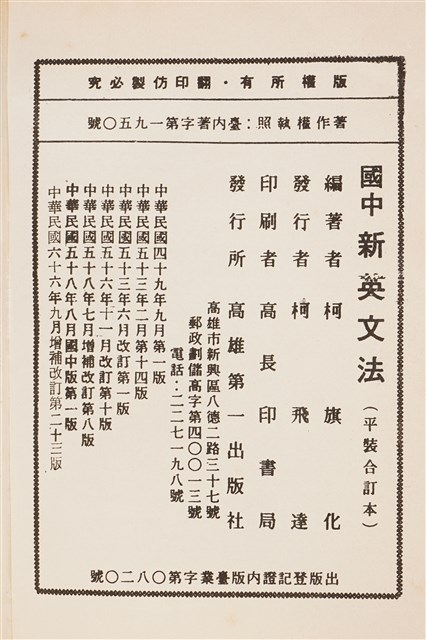 2019.024.0584 柯旗化編著《國民中學適用新英文法》