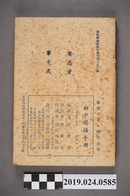2019.024.0585 柯旗化編著《48年度新編投考必備初中英語手冊》