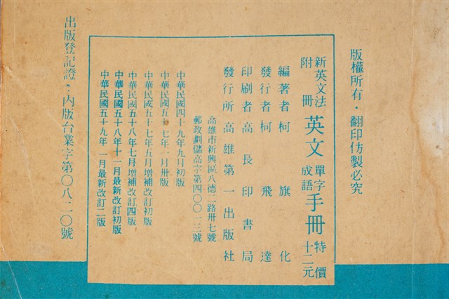 2019.024.0589 柯旗化編著《新英文法附冊英文單字成語手冊 (最新改訂版)》