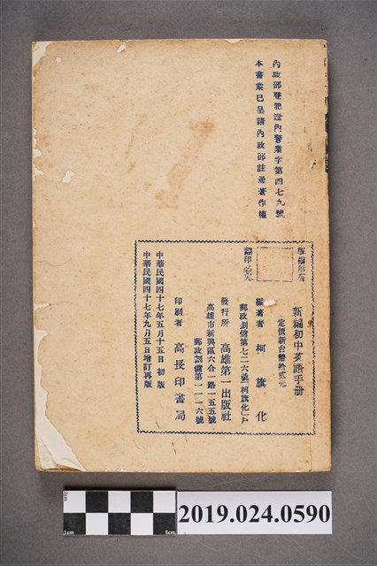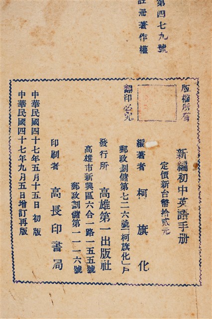 2019.024.0590 柯旗化編著《投考必備新編初中英語手冊》