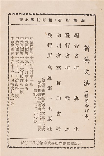 2019.024.0592 柯旗化編著《新英文法 (全)》