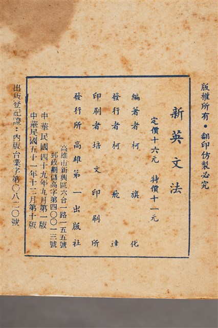 2019.024.0596 柯旗化編著《中學適用新英文法 (修訂版)》