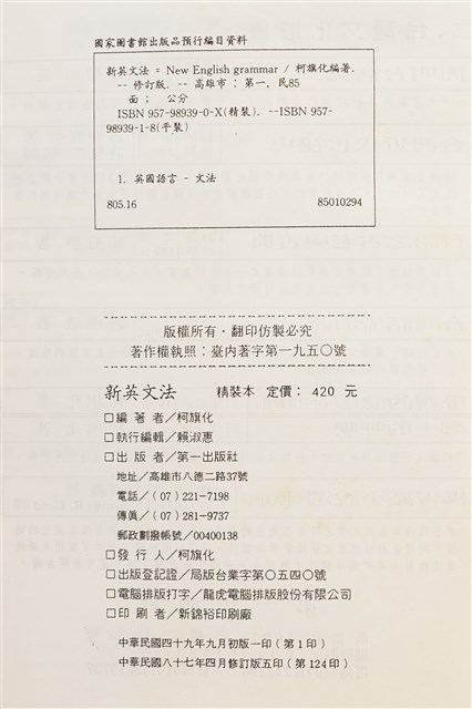 2019.024.0599 柯旗化編著《中學適用新英文法 (電腦新排版)》
