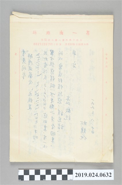 出版社用箋,柯旗化留存1992年12月5日至1993年8月14日之信箋書簡簿,內共有38封信箋,為第一出版社使用的信箋,柯旗化在1976年第二次出獄後在第一出版社的經營上開始使用信箋簿,主要是將寄出去的信件內容,透過複寫紙在信箋簿上留存,並持續這個習慣一直到1995年,與其他遭受過白色恐怖的受害者一樣,言行都會格外謹慎,何況是還處於戒嚴時期的信件,深恐又被莫名逮捕入獄,此類信箋簿本捐贈案收藏非常完整,包括從1976年至1995年間的信箋簿,而大部分的信箋內容主要還是以出版社業務(估價、訂購書籍回函等等)為主,頁中不時夾帶郵政匯票收據。