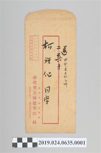 2019.024.0635.0001 柯旗化台灣省師範學院警告狀通知書信封