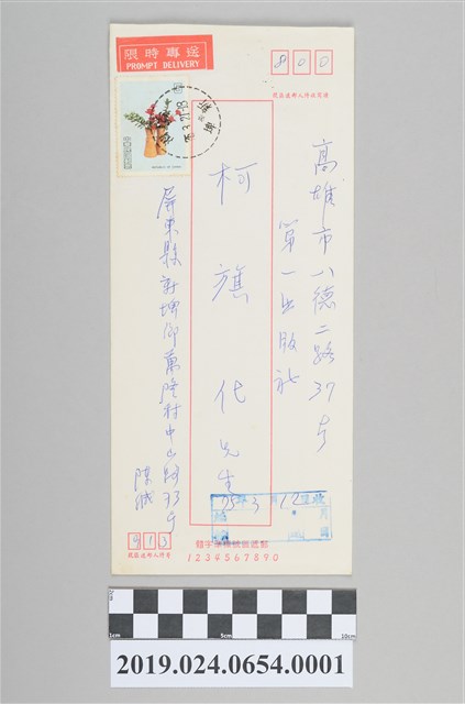 2019.024.0654.0001 陳冠學寄柯旗化信封(1986年3月12日)