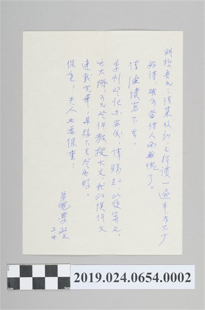 2019.024.0654.0002 陳冠學寄柯旗化信紙(1986年3月12日)