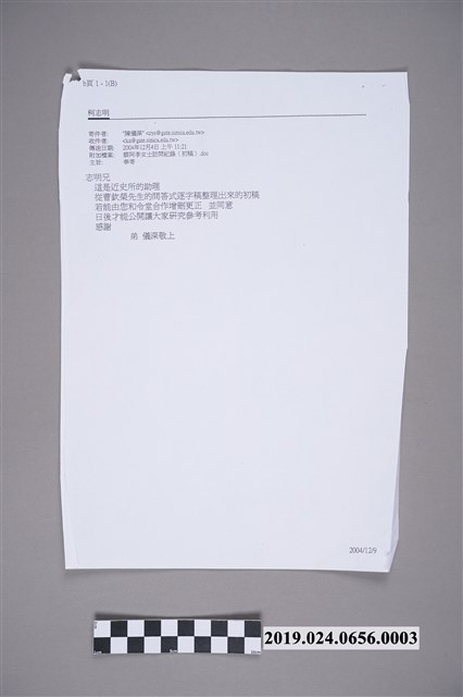 2019.024.0656.0003 柯志明寄柯蔡阿李郵件影本(2004年12月4日)