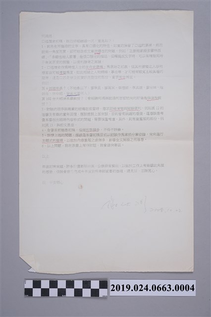 2019.024.0663.0004 謝仕淵寄柯蔡阿李之傳真(2008年10月22日)