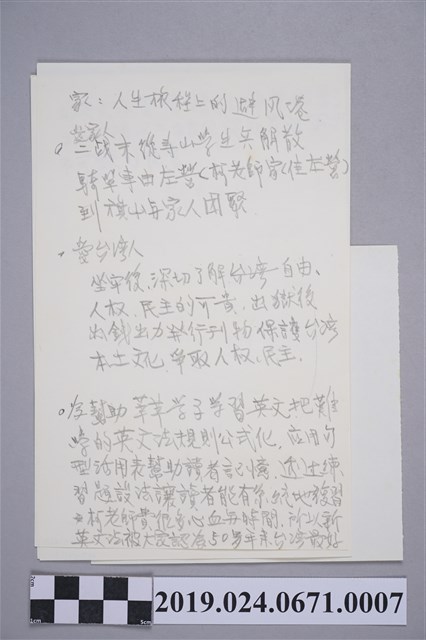 2019.024.0671.0007 柯蔡阿李草擬柯旗化生平之筆記