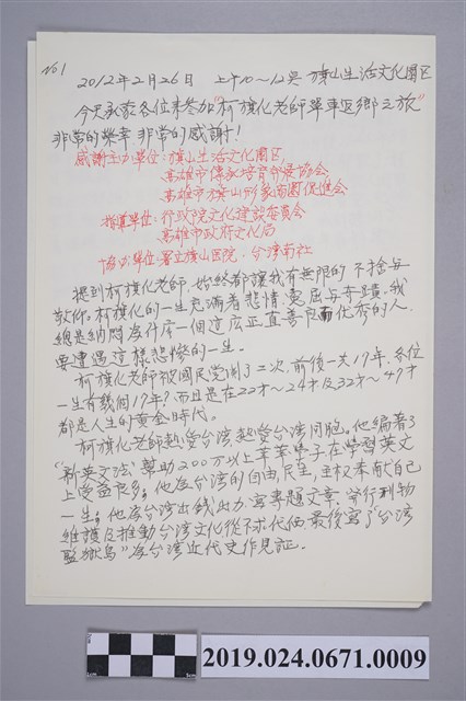 2019.024.0671.0009 柯蔡阿李於柯旗化單車賽與坐監活動之致詞稿