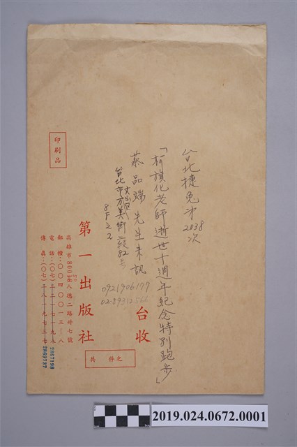 2019.024.0672.0001 柯旗化逝世十周年紀念特別跑步資料之信封