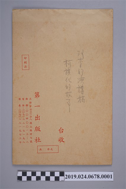2019.024.0678.0001 柯蔡阿李活動演講稿之信封