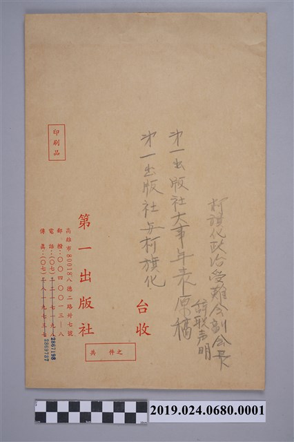 2019.024.0680.0001 柯蔡阿李收藏柯旗化與第一出版社信件之信封