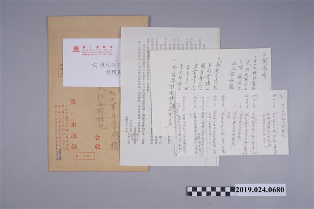 2019.024.0680 柯蔡阿李收藏柯旗化與第一出版社信件