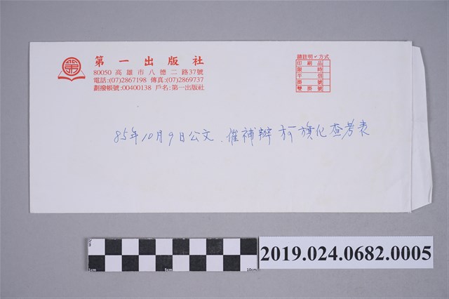 2019.024.0682.0005 1996年10月9日柯蔡阿李收到政府公文信封〈催補辦柯旗化查考表〉