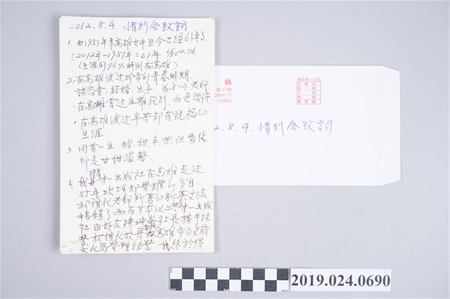 2019.024.0690.0001 柯蔡阿李退休惜別會致詞稿之信封