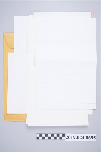 1.本文物信封袋內裝有關於柯旗化自傳《台灣監獄島》日文版再版新聞的傳真訊息2份、唐麗芳信件1件以及柯蔡阿李的隨筆便條紙5張。2.日本台灣學會會長石田浩2007年1月8日於台北突然逝世,一生投入日台交流與台灣研究的工作,也是當時日本台灣學會的會長,而在接受到石田浩逝世的消息後,日本台灣學會決定實現他生前期盼的計劃,打算再版發行柯旗化日文版的自傳《台灣監獄島》,而因為再版的編輯內容計劃加入柯旗化晚年、喪禮,以及家人等相關內容,故主動聯絡其遺孀柯蔡阿李提供相關影像與資料。3.柯蔡阿李在柯旗化逝世後,積極地在媒體上受訪發聲,過程中除了主動校正、修改字稿外,也幫柯旗化代言出席各種人權活動、政治活動,私底下也默默地保存所有報導與活動等相關文件,多年來的累積也使這類收藏相當豐富完整,對蔡阿李來說,這些是用來見證及宣傳柯旗化的理念,也是紀念其先生柯旗化的最好方式。