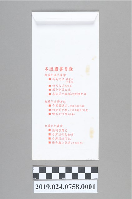 信封袋內裝有許極燉譯〈安息歌〉台語翻譯稿影本,內容為〈安息歌〉歌詞草稿,柯蔡阿李為柯旗化逝世週年禮拜活動,安排詠唱《安息歌》的橋段,因此委託許極燉教授翻譯歌詞成「台語版」,當時228受難者在監獄傳唱的《安息歌》歌詞,仍維持使用祖國、民族、愛國等字彙,柯蔡阿李對此覺得不妥,在蔡阿李寫在歌詞草稿旁的筆記可以看出,她認為台灣人必須擺脫中華民族這個想像共同體的錯亂認知,故將原版歌詞中的「愛國」、「民族」等詞,分別換成「Formasa」、「台灣」、「愛鄉」等字,並改編成台語版本,以追求柯旗化一生所堅持的台灣精神。2.柯蔡阿李在柯旗化晚年,開始嘗試擺脫過去被壓迫的心裡恐懼,為自己與柯旗化發聲,受到許多台灣本土文化、人權、政治活動以及媒體邀請,而私底下的她則默默地保存所有相關活動文件以及信件等,多年來的累積也使這類收藏相當豐富完整,對柯蔡阿李來說,這些是用來見證及宣傳柯旗化的理念,也是紀念其先生柯旗化的最好方式。