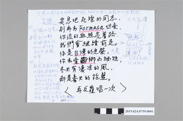 2019.024.0759.0001 柯蔡阿李修改〈安息歌〉歌詞草稿之一