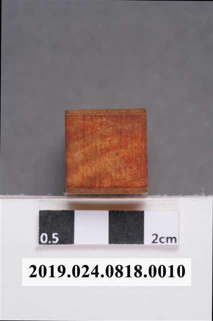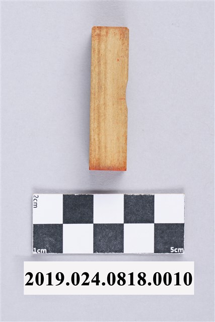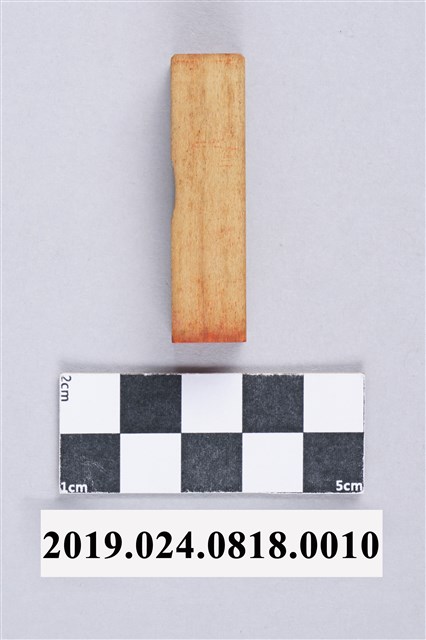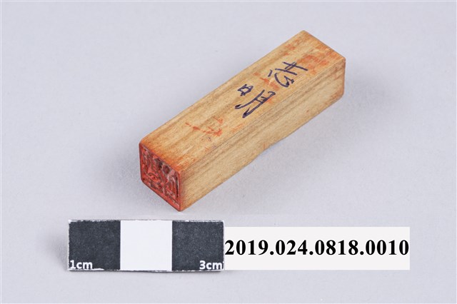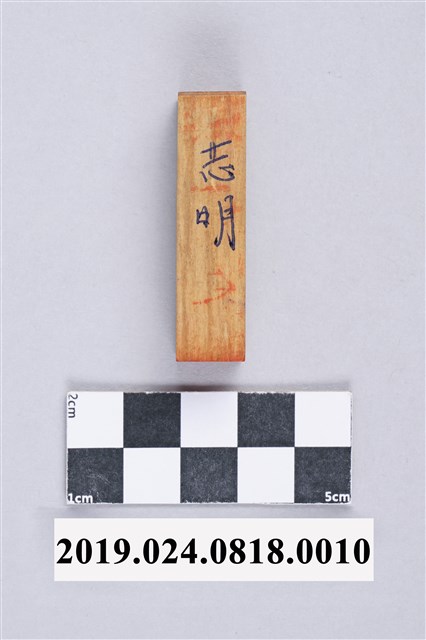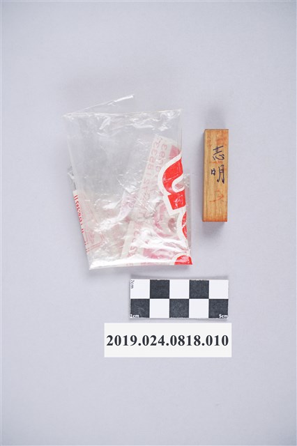 柯志明個人木質印章,用袋子裝著。