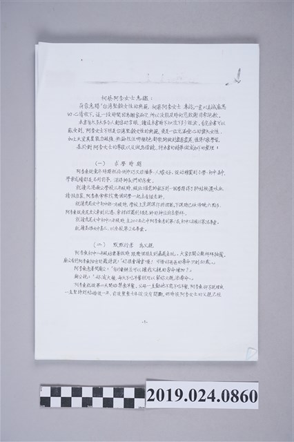 2019.024.0860 王添模摘要《柯蔡阿李-臺灣堅毅女性的典範》