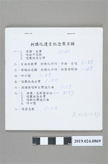 2019.024.0869 柯旗化遺音紀念集CD目錄設計稿