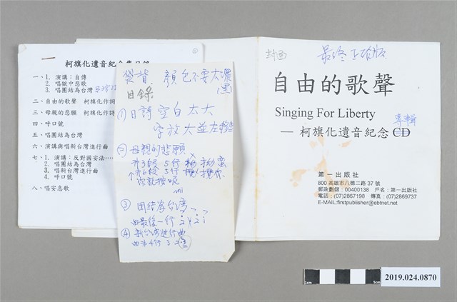 2019.024.0870 柯旗化遺音紀念集CD目錄設計稿