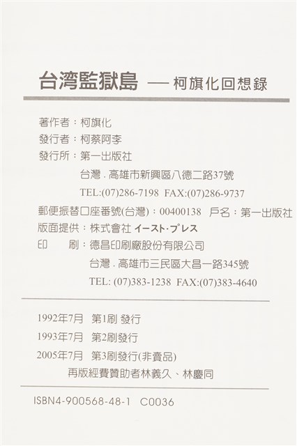2019.024.0883 柯旗化著《台灣監獄島-柯旗化回憶錄》日文版再版