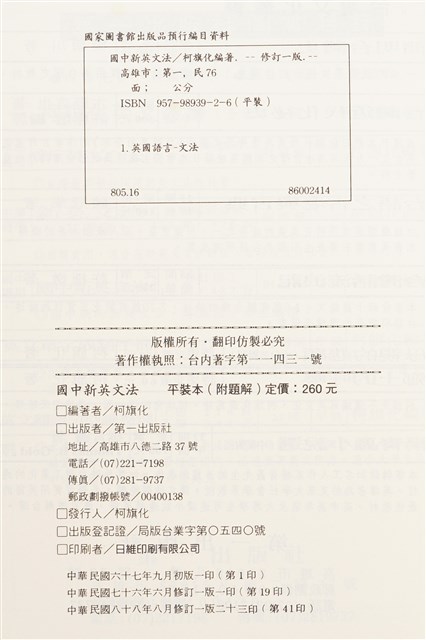 2019.024.0888 柯旗化編著《中學適用 國中新英文法(新版)》