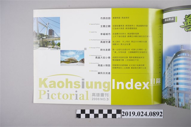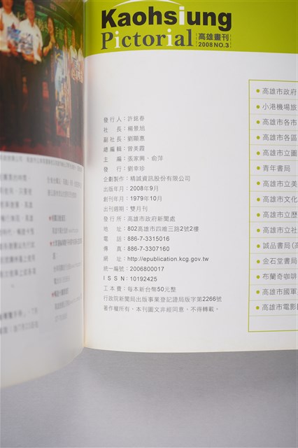 1.本文物為2008年《高雄畫刊》第三期,由高雄市政府新聞處發行,1979年10月創刊,為目前現行刊物,發行至今已有300多期,採雙月刊發行,售價50元,本刊主題為「打造城市美感 展現優質風貌」說明2009年高雄世運會的籌備狀況、高雄電影節等內容,全刊共48頁。此刊在第31頁至33頁的「時光走廊」專欄,由郭蓁蓁特別專訪柯蔡阿李,製作第一出版社50週年專欄,內文刊登了關於柯旗化一生冤屈的監獄故事,以及第一出版社作為當時在本土人文地下基地的貢獻,最後則針對柯蔡阿李支持南部藝文活動表達感謝之詞,專欄中也刊登許多柯蔡阿李近期的照片。2.柯蔡阿李在柯旗化逝世後,積極地在媒體上受訪發聲,過程中除了主動校正、修改字稿外,也幫柯旗化代言出席各種人權活動、政治活動,私底下也默默地保存所有報導與活動等相關文件,多年來的累積也使這類收藏相當豐富完整,對蔡阿李來說,這些是用來見證及宣傳柯旗化的理念,也是紀念其先生柯旗化的最好方式。