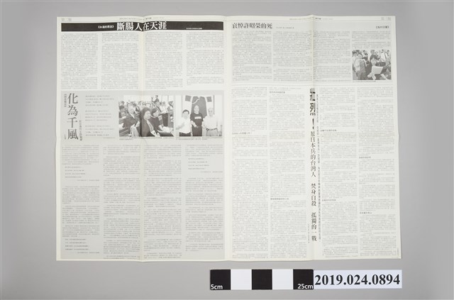 1.高雄市關懷台籍老兵暨許昭榮文化協會《會訓》2008年11月9日創刊號,由發行當天同時成立的關懷台籍老兵暨許昭榮文化協會發行,協會主要任務為紀念並完成520自焚的台籍老兵許昭榮遺願,以及完成台籍老兵的口述歷史與紀錄片等,會刊內容有許昭榮海葬過程記錄、「戰爭與和平記念公園」設立運動奮鬥史、凃建豐、平野久美子、三宅清子記念文章等,共一大張,折疊存放。2.高雄市關懷台籍老兵暨許昭榮文化協會的對象是指過去在台灣出生的軍人經歷過於日治時代被動員參加大東亞戰爭的台籍日本兵,以及終戰後又國民政府調往中國投入國共內戰,其中也有俘為解放軍的軍人,而協會最大的目的便是給予這些在紛亂年代不知為何而戰的台籍軍人找尋歷史定位與尊嚴。 2.柯蔡阿李在柯旗化逝世後,積極地在媒體上受訪發聲,也保存所有參加人權、柯旗化相關活動等報導與文件,柯蔡阿李收藏這類的收藏相當完整,對柯蔡阿李而言,突破沉默是對柯旗化理念最好的見證與傳遞,也是她對於已逝的丈夫的一種紀念,透過蔡阿李這些鉅細靡遺的收藏,也印證了一位女性政治受難者生命史的歷程。