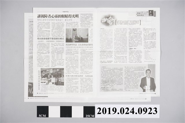 1.柯蔡阿李收集的柯旗化相關剪報,為2002年3月31日台灣教會公報週刊第2613期復活節特刊,柯蔡阿李收藏原因係報導與柯旗化有關的新聞,報導標題為「苦難生命的轉化與蛻變」、「一盞台灣良心的燈火」,兩文刊登於第18、19頁,分別由幕容千、許極燉撰寫,「苦難生命的轉化與蛻變」為教友幕容千對柯蔡阿李的專訪內容,談述柯旗化與蔡阿李夫妻兩人的信仰經歷;另一篇刊登文章「一盞台灣良心的燈火」為好友許極燉撰寫,細數柯旗化一生之貢獻包括在英語教育、詩詞創作、台灣民主運動等等,特撰此文以悼念柯旗化的離世,共2張。 2.柯蔡阿李女士在先生柯旗化晚年期間,媒體訪談邀約不斷, 起初的她就如同多數政治受難者一樣戒慎戒懼的抗拒,然而一次電視節目邀約與友人的支持下柯蔡阿李開始嘗試突破過去的沉默,開始在媒體上發聲,期間不間斷地將報章雜誌上一切有關自己、柯旗化等政治活動的報導收藏下來,對柯蔡阿李而言,突破沉默是對柯旗化理念最好的見證與傳遞,也是她對於已逝的丈夫的一種紀念,透過蔡阿李這些鉅細靡遺的收藏,也印證了一位女性政治受難者生命史的歷程。