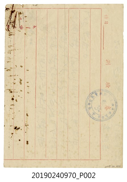 本文物為1963年11月28日柯旗化收到家書,由柯志明寫給獄中的柯旗化,用注音寫下告知柯旗化已上小學一年級之事。柯旗化第二次入獄時期(1961年到1976年)從獄中寄回家給柯蔡阿李及其親屬之信件,信件內容主要包括《新英文法》增補改訂的編輯工作、讀者回函以及對家人親屬的問候,由於柯旗化寫信時仍於監獄中,寄出的信件往往有字數限制,內容上也必須受到檢查。此文物於2007年時由柯蔡阿李女士委託本館進行《獄中家書:柯旗化坐監書信集》編輯出版工作,並於2010年將信件全文完成出版,2017年柯蔡阿李女士希望透過捐贈的方式將這批原先暫存於本館庫房的文物進入博物館典藏中。有別於過去戒嚴時期政治司法案件以解讀檔案建構歷史的形態,柯旗化的坐監書信集中當事人與其家屬的互動則提供了更常民、生活化的面向來理解這段歷史。紙張保存狀況尚完整,但已泛黃。