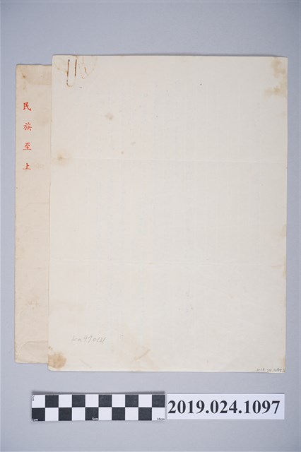 本文物為1969年6月9日柯旗化獄中家書,柯旗化第二次入獄時期(1961年到1976年)從獄中寄回家給柯蔡阿李及其親屬之信件,信件內容主要包括《新英文法》增補改訂的編輯工作、讀者回函以及對家人親屬的問候,由於柯旗化寫信時仍於監獄中,寄出的信件往往有字數限制,內容上也必須受到檢查。此文物於2007年時由柯蔡阿李女士委託本館進行《獄中家書:柯旗化坐監書信集》編輯出版工作,並於2010年將信件全文完成出版,2017年柯蔡阿李女士希望透過捐贈的方式將這批原先暫存於本館庫房的文物進入博物館典藏中。有別於過去戒嚴時期政治司法案件以解讀檔案建構歷史的形態,柯旗化的坐監書信集中當事人與其家屬的互動則提供了更常民、生活化的面向來理解這段歷史。紙張保存狀況尚完整,但已泛黃。