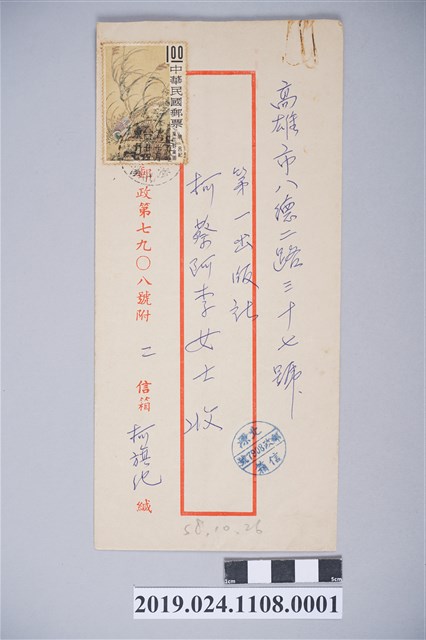 2019.024.1108.0001 1969年10月22日柯旗化獄中家書之信封