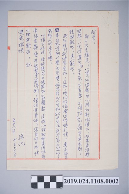 2019.024.1108.0002 1969年10月22日柯旗化獄中家書之內容