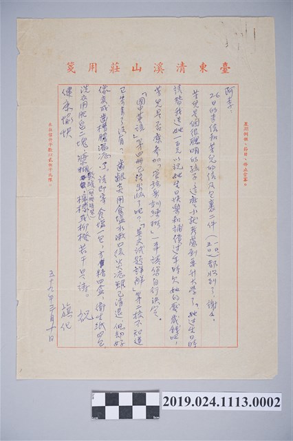 2019.024.1113.0002 1970年3月10日柯旗化獄中家書之內容