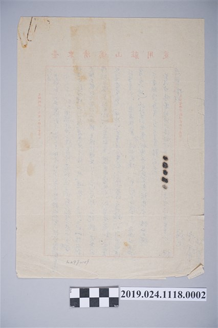 本文物為1970年9月15日柯旗化獄中家書之內容,柯旗化第二次入獄時期(1961年到1976年)從獄中寄回家給柯蔡阿李及其親屬之信件,信件內容主要包括《新英文法》增補改訂的編輯工作、讀者回函以及對家人親屬的問候,由於柯旗化寫信時仍於監獄中,寄出的信件往往有字數限制,內容上也必須受到檢查。此文物於2007年時由柯蔡阿李女士委託本館進行《獄中家書:柯旗化坐監書信集》編輯出版工作,並於2010年將信件全文完成出版,2017年柯蔡阿李女士希望透過捐贈的方式將這批原先暫存於本館庫房的文物進入博物館典藏中。有別於過去戒嚴時期政治司法案件以解讀檔案建構歷史的形態,柯旗化的坐監書信集中當事人與其家屬的互動則提供了更常民、生活化的面向來理解這段歷史。紙張保存狀況尚完整,但已泛黃。