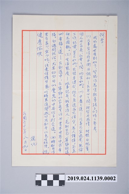 2019.024.1139.0002 1971年8月9日柯旗化獄中家書之內容