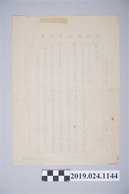 本文物為1971年12月6日柯旗化獄中家書,柯旗化第二次入獄時期(1961年到1976年)從獄中寄回家給柯蔡阿李及其親屬之信件,信件內容主要包括《新英文法》增補改訂的編輯工作、讀者回函以及對家人親屬的問候,由於柯旗化寫信時仍於監獄中,寄出的信件往往有字數限制,內容上也必須受到檢查。此文物於2007年時由柯蔡阿李女士委託本館進行《獄中家書:柯旗化坐監書信集》編輯出版工作,並於2010年將信件全文完成出版,2017年柯蔡阿李女士希望透過捐贈的方式將這批原先暫存於本館庫房的文物進入博物館典藏中。有別於過去戒嚴時期政治司法案件以解讀檔案建構歷史的形態,柯旗化的坐監書信集中當事人與其家屬的互動則提供了更常民、生活化的面向來理解這段歷史。紙張保存狀況尚完整,但已泛黃。