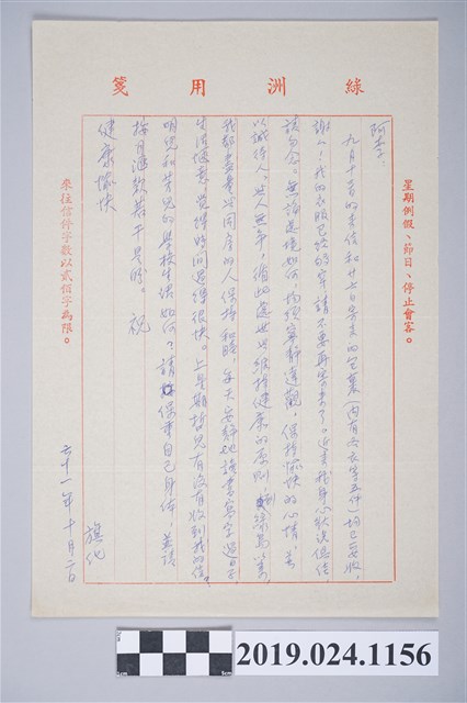 2019.024.1156 1972年10月2日柯旗化獄中家書