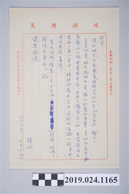 2019.024.1165 1973年2月19日柯旗化獄中家書