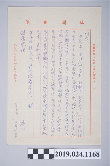 2019.024.1168 1973年3月12日柯旗化獄中家書