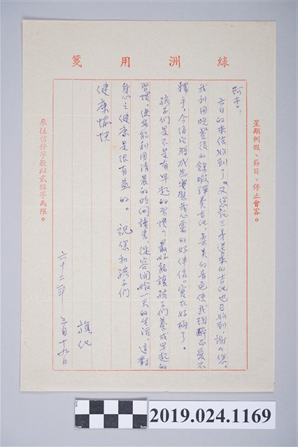 2019.024.1169 1973年3月19日柯旗化獄中家書