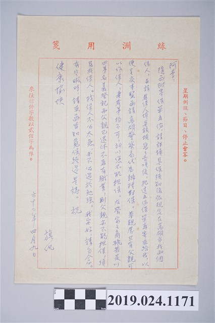 2019.024.1171 1973年4月9日柯旗化獄中家書