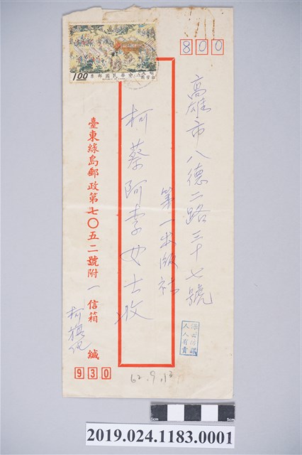 2019.024.1183.0001 1973年9月10日柯旗化獄中家書之信封