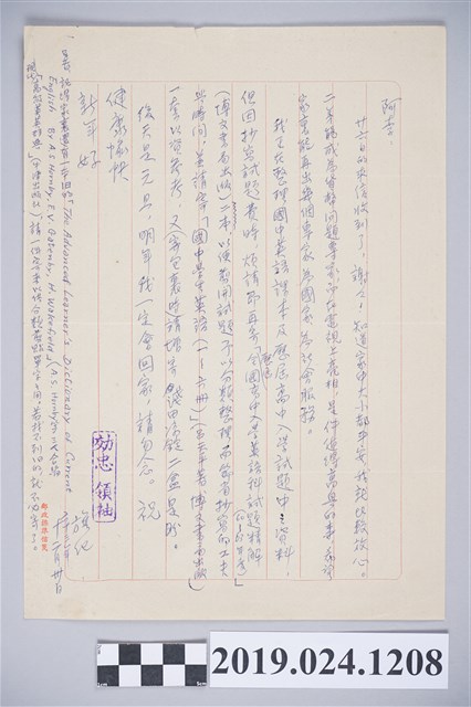 2019.024.1208 1974年12月30日柯旗化獄中家書