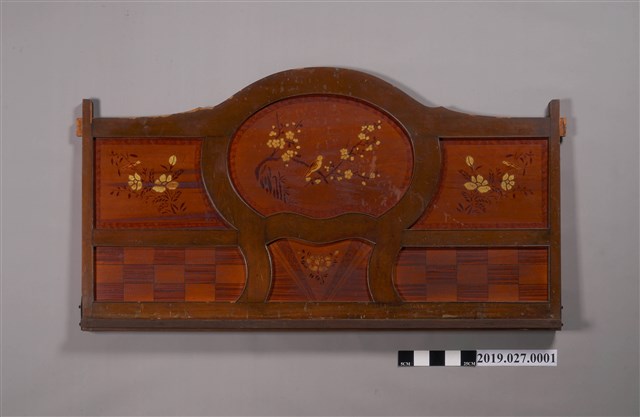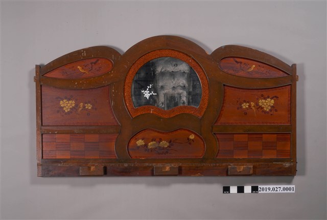 2019.027.0001 彩繪鑲照鏡四柱紅眠床